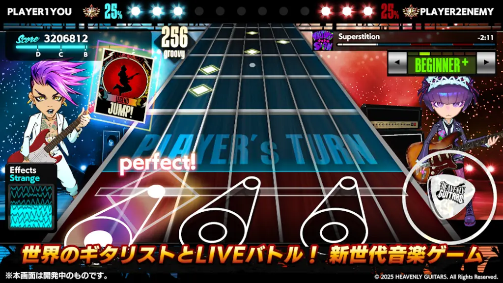Heavenly Guitarsで熱狂バトル&コンボマスターへの道♪ 対戦中に難易度を自在にチェンジして熱く盛り上がろう♪ 『Heavenly Guitars』では、従来のリズムゲームとは一線を画す要素として、なんとLIVEバトル中でも難易度をリアルタイムに上下できちゃいます♪...
